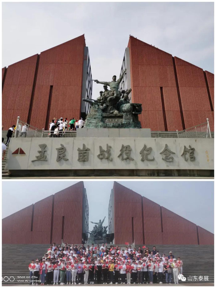 在參觀孟良崮戰役(yì)紀念館之前,由山東泰展機電科技股份有限公司董事長、黨支部書記劉之明帶領一行100餘人首先來到蒙山腳下“踏尋先輩足跡,賡(gēng)續紅色基因(yīn)”,鼓勵眾人發揮“守初心、不放棄、永奮鬥(dòu)”的泰展精(jīng)神,勇攀高峰。